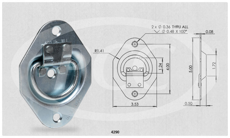 Tie Down Anchor; Floor Mount; 400 Pound Maximum Work Load.